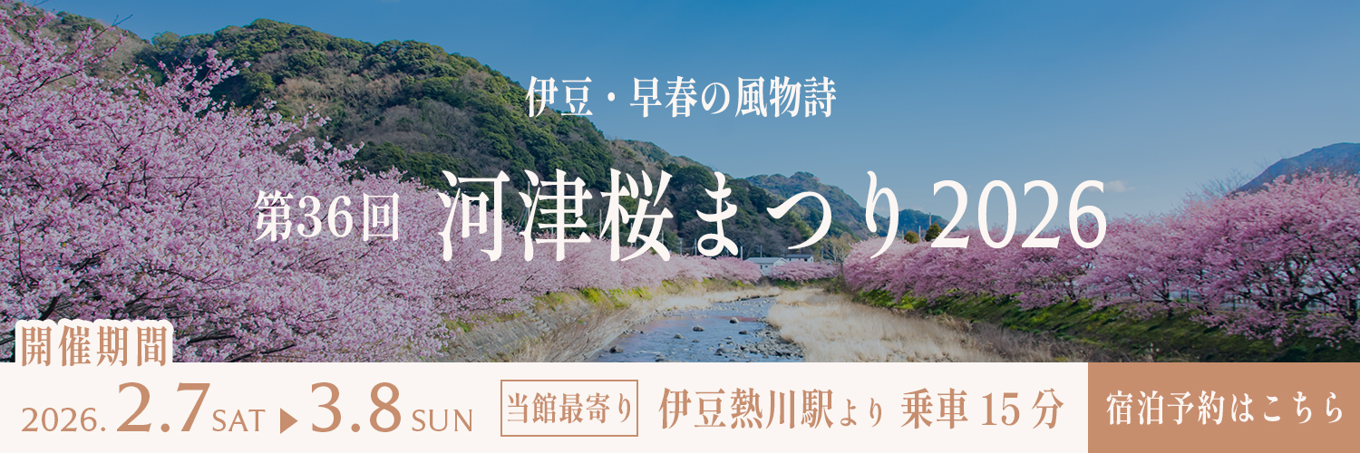 | 東京駅 | 新幹線 こだま(約55分)→熱海駅→JR伊東線・伊豆急行線(約60分)→伊豆熱川駅→送迎車または駅から徒歩10分 |