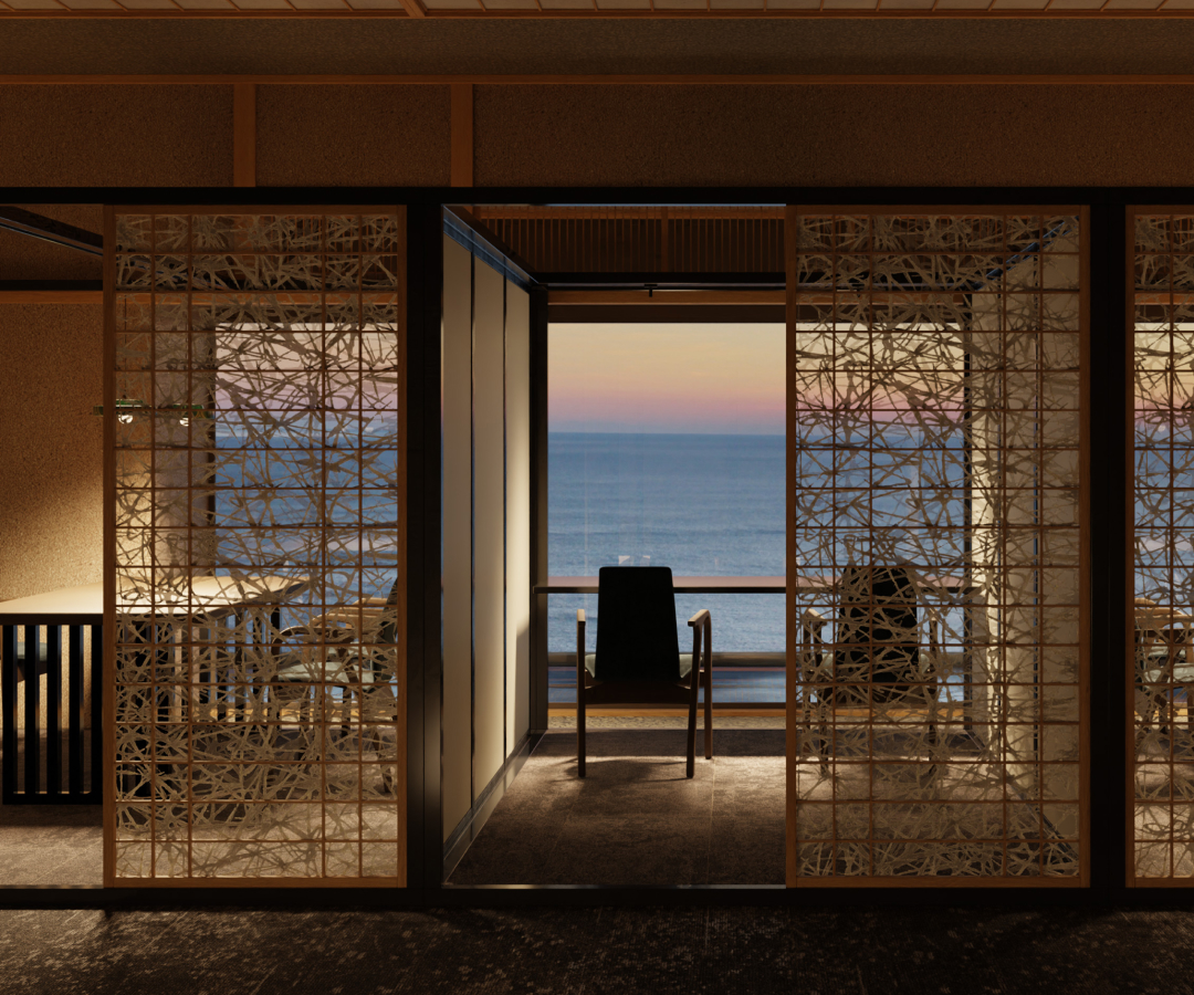 朝は水平線から昇る陽光が差し込み、夜は月明かりが波に揺れる。